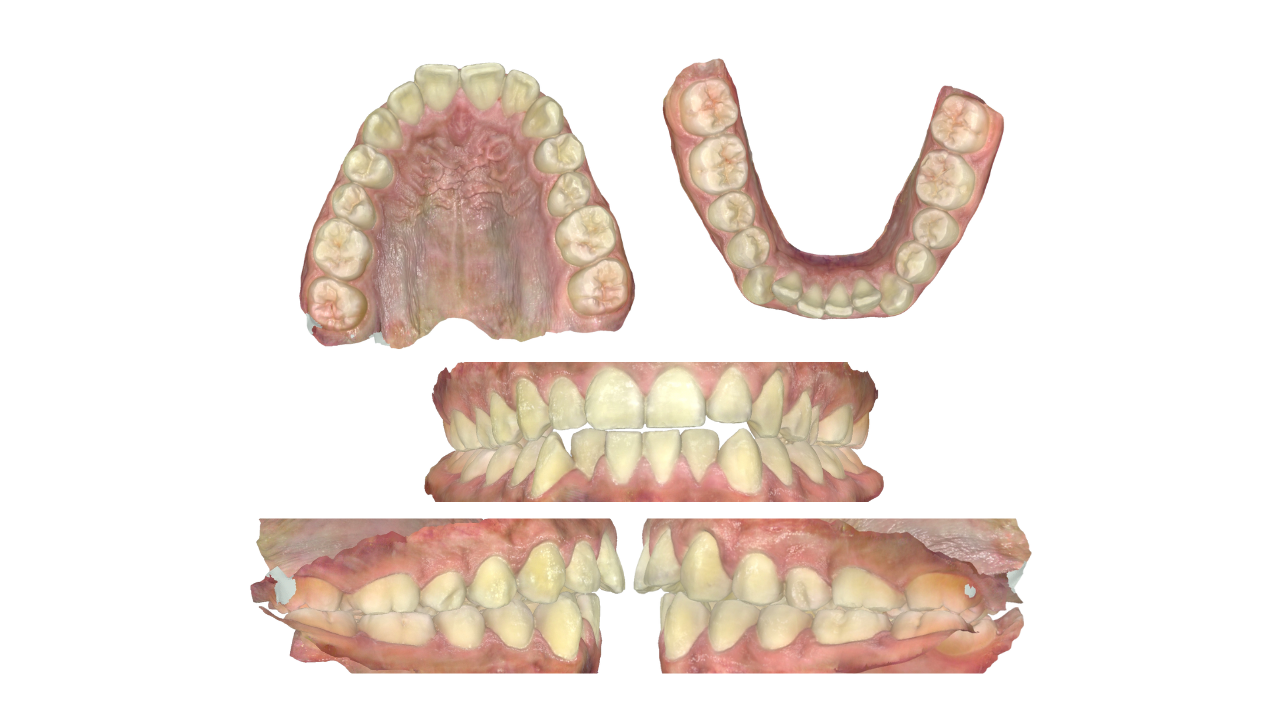 Case 2 - Class 1: Mild crowding, mild anterior open bite, crossbite tendency. Fixed Appliance Plan: Non-Extraction